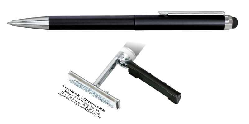 Multifunkční propisovací tužka HERI SMART STYLE v sobě kombinuje pero, razítko a Smart Touch Pen v jednom. Touch Pen umožňuje přesné a snadné dotykové operace na všech existujících elektronických výrobcích na trhu. Polštářek lze případně doplnit barvou 7010 z naší nabídky.